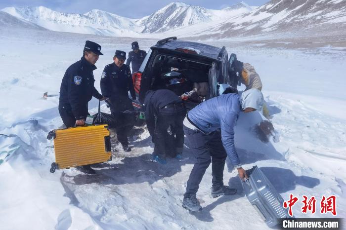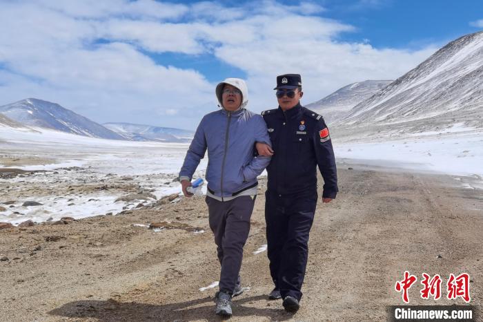 图为4月16日,西藏阿里边境管理支队巴嘎边境检查站民警救援受困游客。邓鸿摄